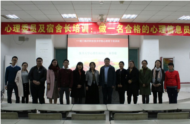 2017年12月21日,我院学生处邀请中国心理卫生协会职业心理健康促进专业委员会委员、厦门集美大学心理咨询中心专职副主任、副研究员林赞歌老师在翔安校区T1举办“做一名合格的心理信息员”的专题讲座,我院学生处处长赵胜东、辅导员谢玲、俞琪琦、李舜星、周仕仁、程欣然、刘晓晓、陈全璐、黄昆仑、洪亚兰、朱巧旋、学生代表近百名人员聆听了这次讲座。