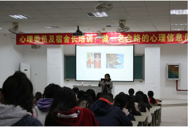 6时30分,讲座正式开始,我院心理健康教育中心专职心理老师何晓莹主持讲座并介绍出席人员。林赞歌老师首先介绍了集美大学心理健康工作情况,其次系统阐明了心理委员的职责,并明确指出要做好心理健康知识的“宣讲员”和班级宿舍学生心理动态的“心理反馈员”;同时还明确了辅导员要善于察言观色,及时关注学生的心理健康动向,做到早发现早干预早治疗;并提出“心理老师-辅导员-心理委员-宿舍长”的心理安全金字塔;期间,林赞歌老师积极与在座同学互动,场面十分活跃,同学们不仅学到了知识,而且也知道了心理委员职责范围。