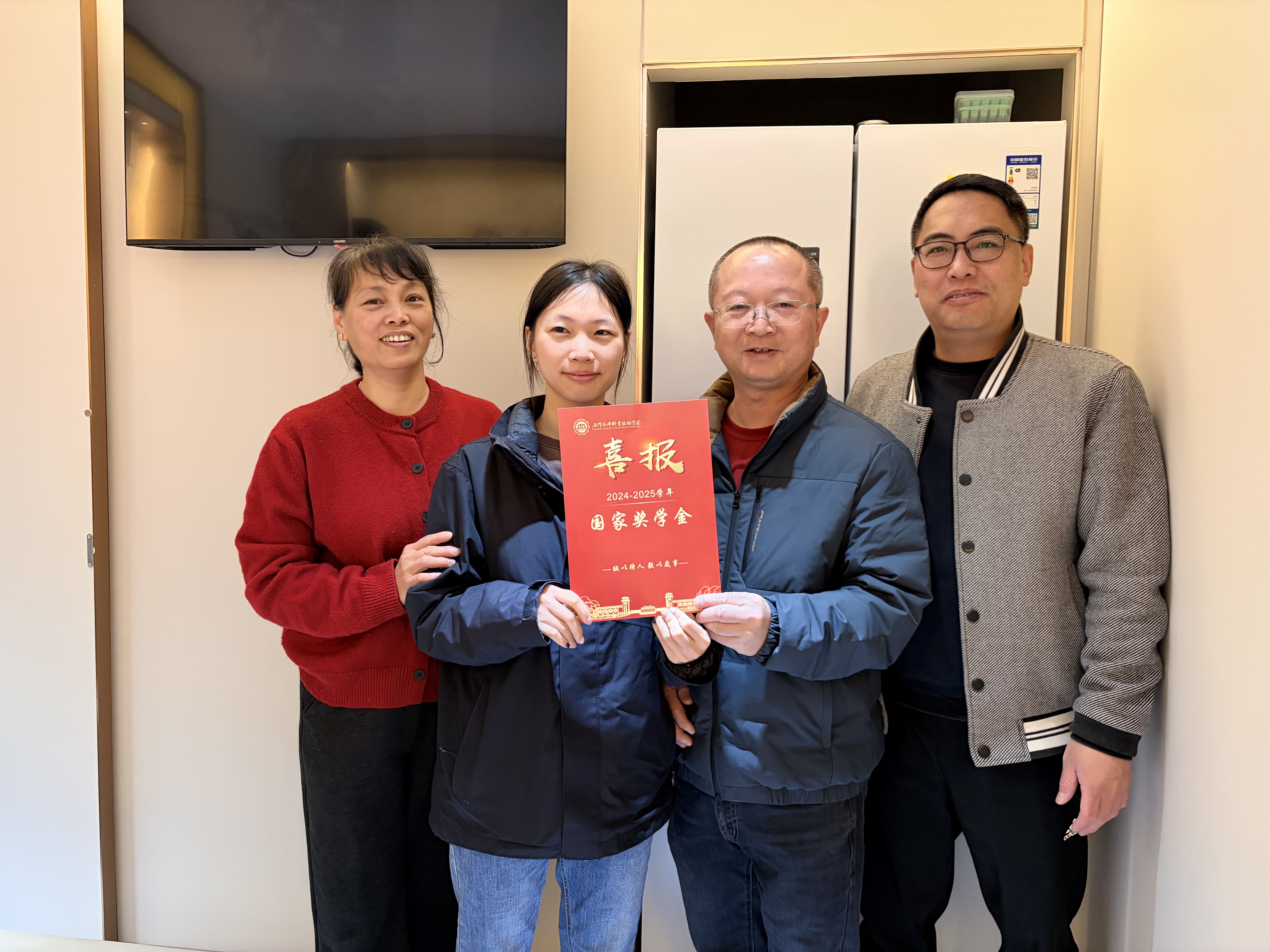 【海洋生物学院】家长感言:“真没想到,学院领导和老师会大老远亲自跑来,不仅送来喜报,还坐下来和我们聊孩子在学校的情况,讲国家的资助政策。看到喜报,听着老师的介绍,我们心里倍感温暖,真切感受到学校对学生的重视与关爱。”